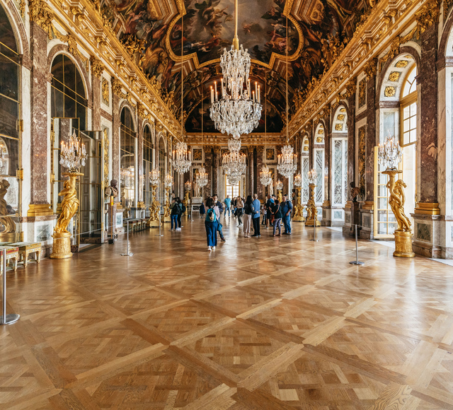 La Reggia di Versailles ha l'aspetto che possiamo ammirare oggi grazie ai lavori voluti dal re Luigi XIV, detto anche il Re Sole o Luigi il Grande, che volle trasferire qui la sua residenza fino alla Rivoluzione Francese. Le sale sono una più bella dell'altra, ma la sala più famosa è la Galleria degli Specchi, completamente decorata e con splendidi lampadari. Potrai poi visitare luoghi come la Camera del Re e la Camera della Regina, la Galleria delle Battaglie, la Camera di Madame Victoire e la Salle des Hoquetons. Menzione d'onore anche al Grande Trianon e Piccolo Trianon, dei piccoli edifici situati tra i giardini, rispettivamente rifugio del re e struttura costruita per volere di Madame Pompadour.